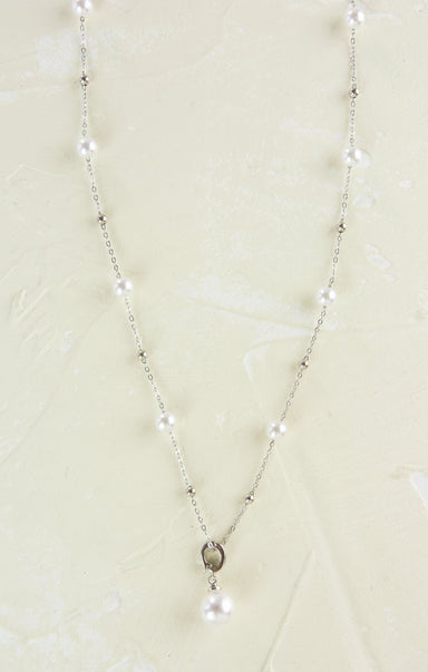 Drape yourself in understated elegance with this charming pearl and silver lariat necklace. The timeless pearl pendant dangles gracefully from a sl...